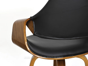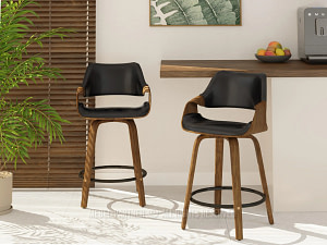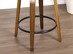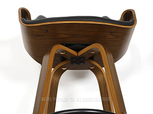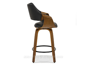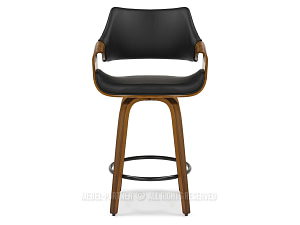 RENZO – Alacsony forgó bárszék hajlított fa vázzal és fekete ekobőrkárpittal