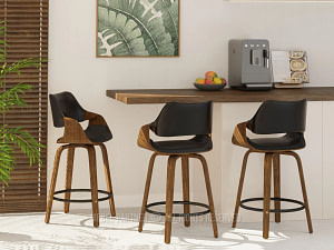 A RENZO forgó bárszék letisztult vonalvezetése tökéletesen illeszkedik a modern, skandináv vagy minimalista enteriőrökhöz. Az ívelt fa forma és a fekete kárpit harmonikus összhangja időtálló stílust sugall, miközben melegséget és kényelmet visz a térbe. Alacsony kialakítása révén ideális megoldás konyhaszigethez vagy étkezőpult mellé.